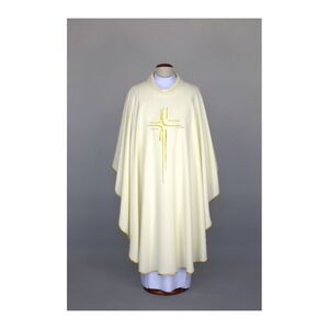 Vista previa: CASULLA BLANCA BORDADA EN DORADO FORMA DE CRUZ.