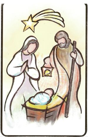 Vista previa: ESTAMPA ITALIANA 7X11 SAGRADA FAMIIA TONOS PASTEL CON BORDES Y LÍNEAS DORADAS