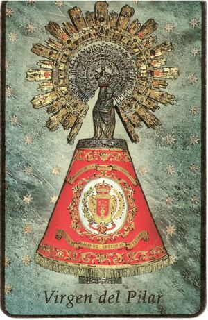 Vista previa: ESTAMPA ITALIANA 7X11 VIRGEN DEL PILAR CON BORDES Y LÍNEAS DORADAS